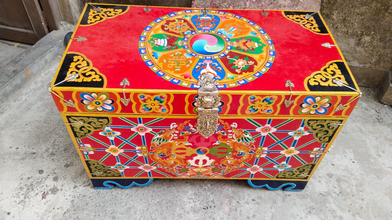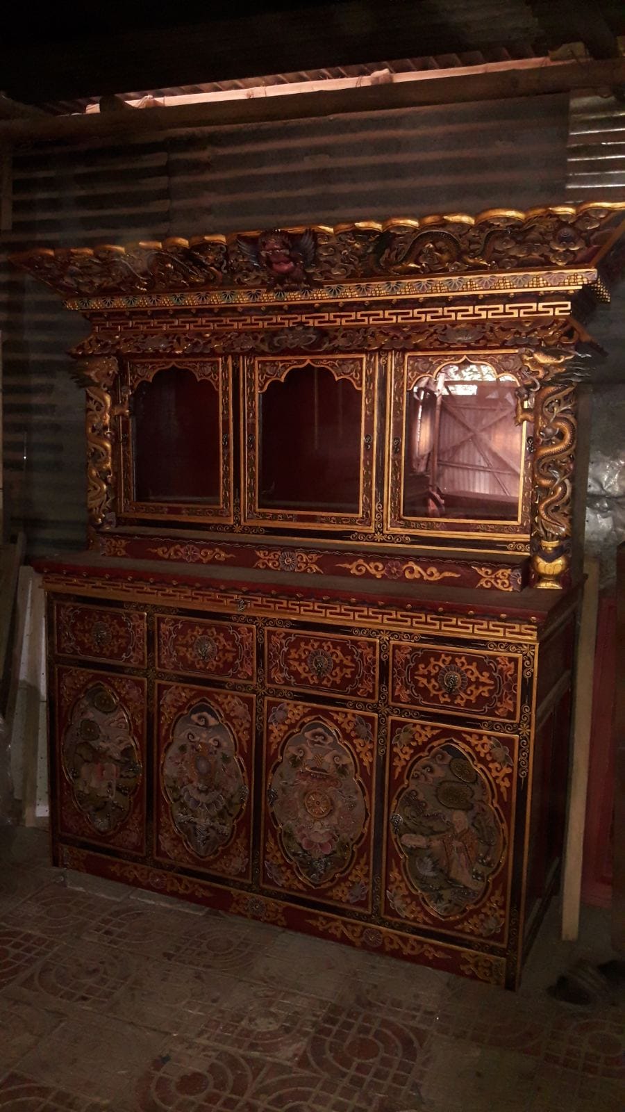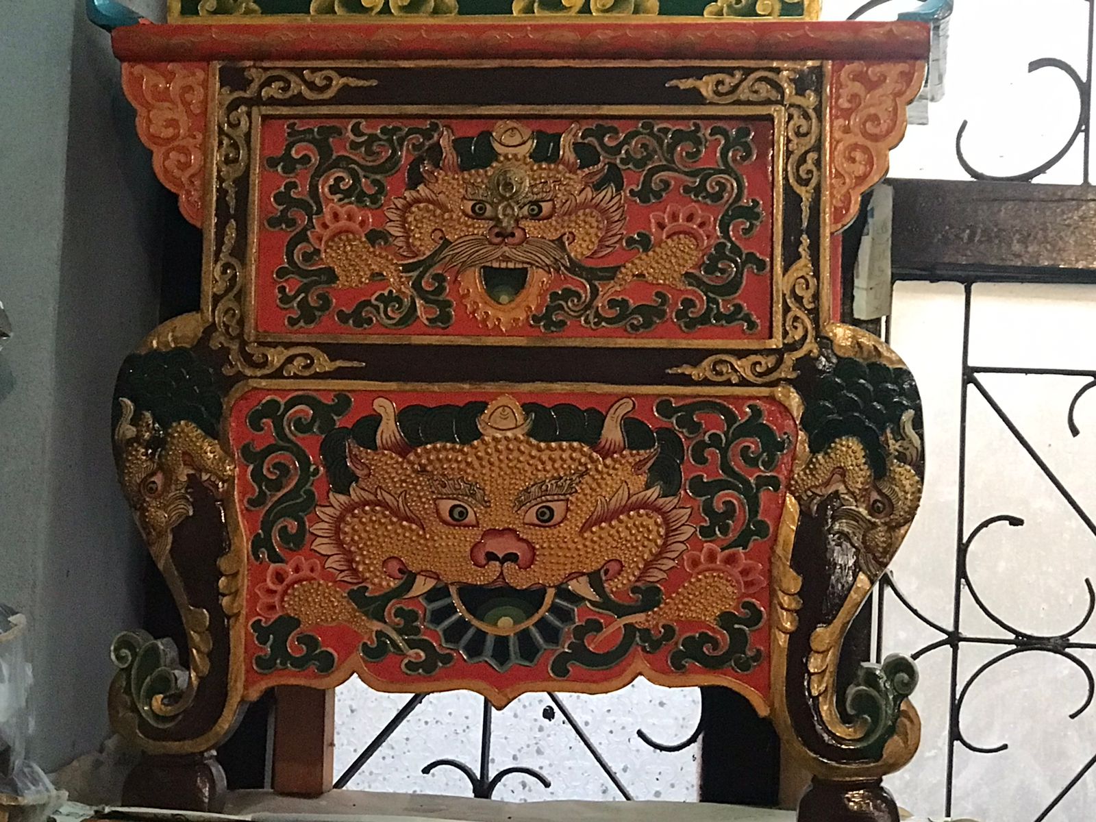 According to The Brief History, there was a record of engagement of carpenters to build the Jokhang Temple and Ramoche Temple in 6BC. Through thousands of years’ handworks of the people, furniture has become a unique style, which bears artistic shapes, rich colors, and delicate craft. Furniture is one of the greatest treasure which dates 1500 years back. These Furniture is mostly made up of pine and Himalayan softwoods i.e. Elm, Pine, Poplar, or Cedarwoods. Furniture comes in many designs. The furniture is mostly engraved with dragons, animals, images of deities, flowers, and religious symbols. In the context of today’s, Floral motifs, dragons, and chepaks (Nepali symbol) are very fashionable in terms of styles. Today the best color combination seems to be red background with designs in gold, blue and green. It all fits in perfectly with the entire aura of interiors furniture. Most of the furniture collected from houses are nearly or completely black in such an order that one cannot see the artwork behind the layers. This Furniture is special of three types: Cabinet, Table, Chest.